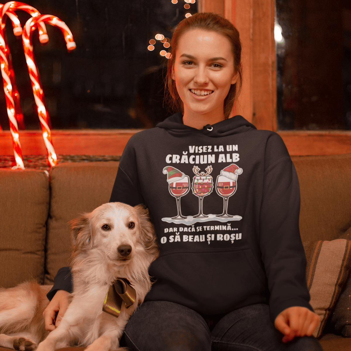 Hanorac Personalizat - Visez la un craciun alb dar o sa beau si rosu