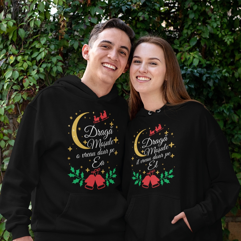 Set 2 Hanorace cuplu personalizate Craciun - Draga mosule o vreau doar pe ea / il vreau doar pe el