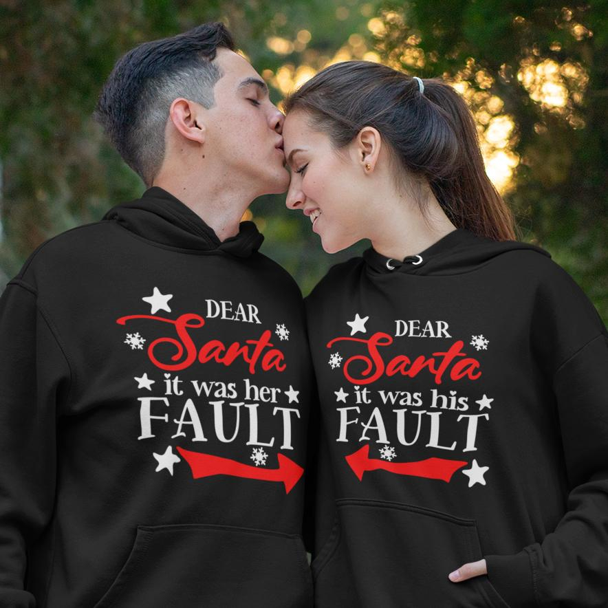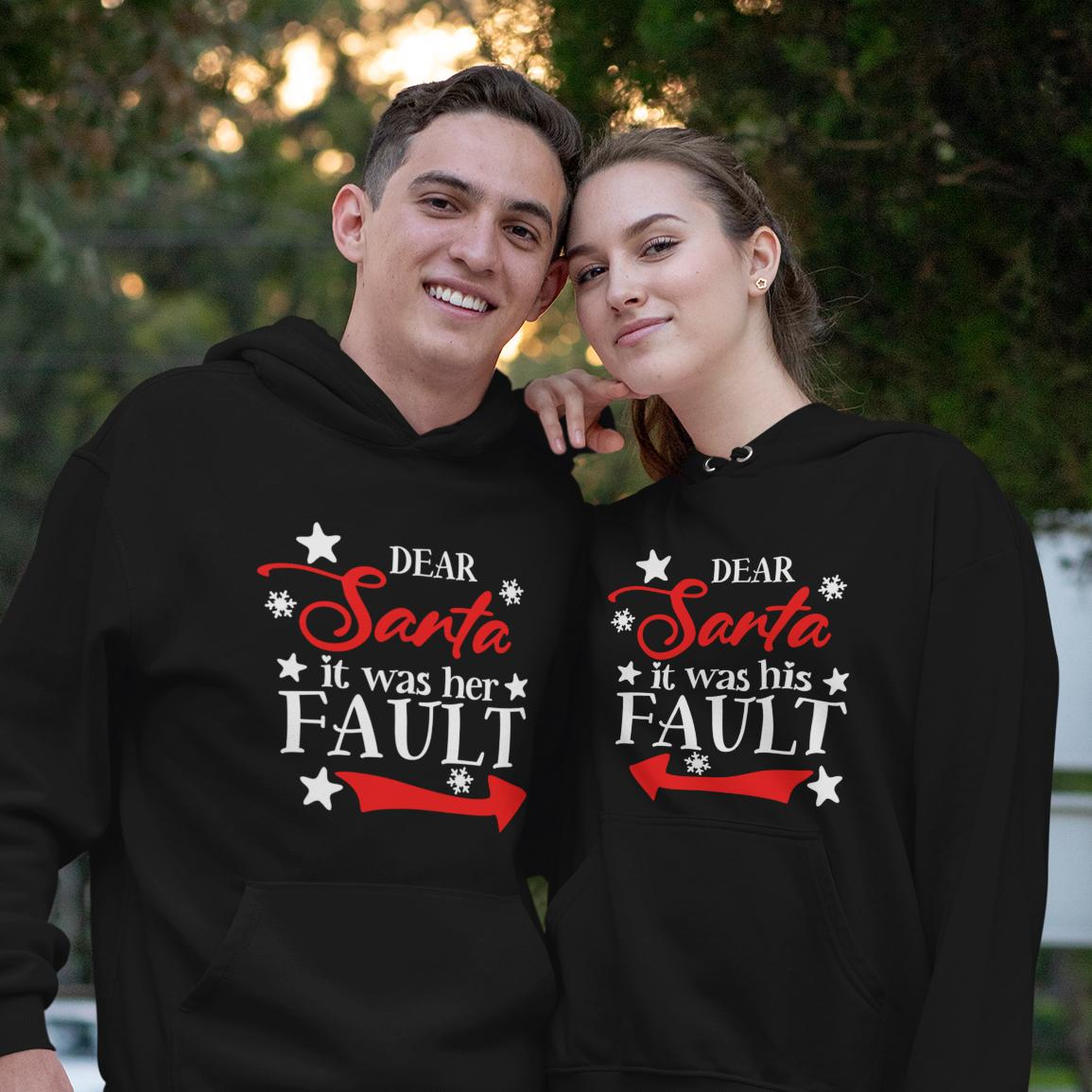 Set 2 Hanorace cuplu personalizate - Santa it was her/his fault