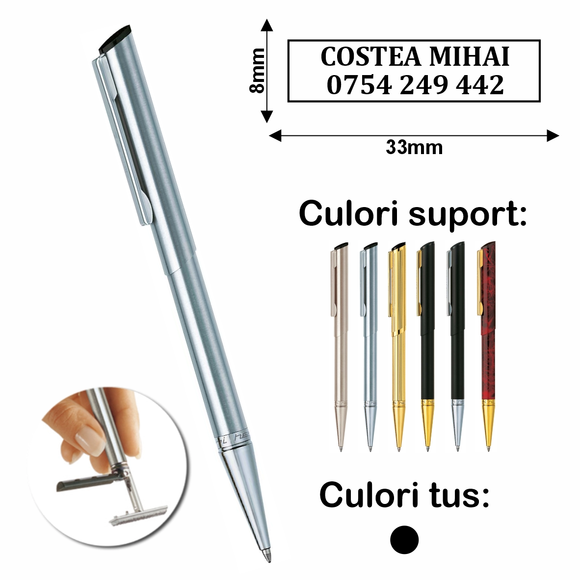 - instrument 2 în 1: pix și parafă personalizată