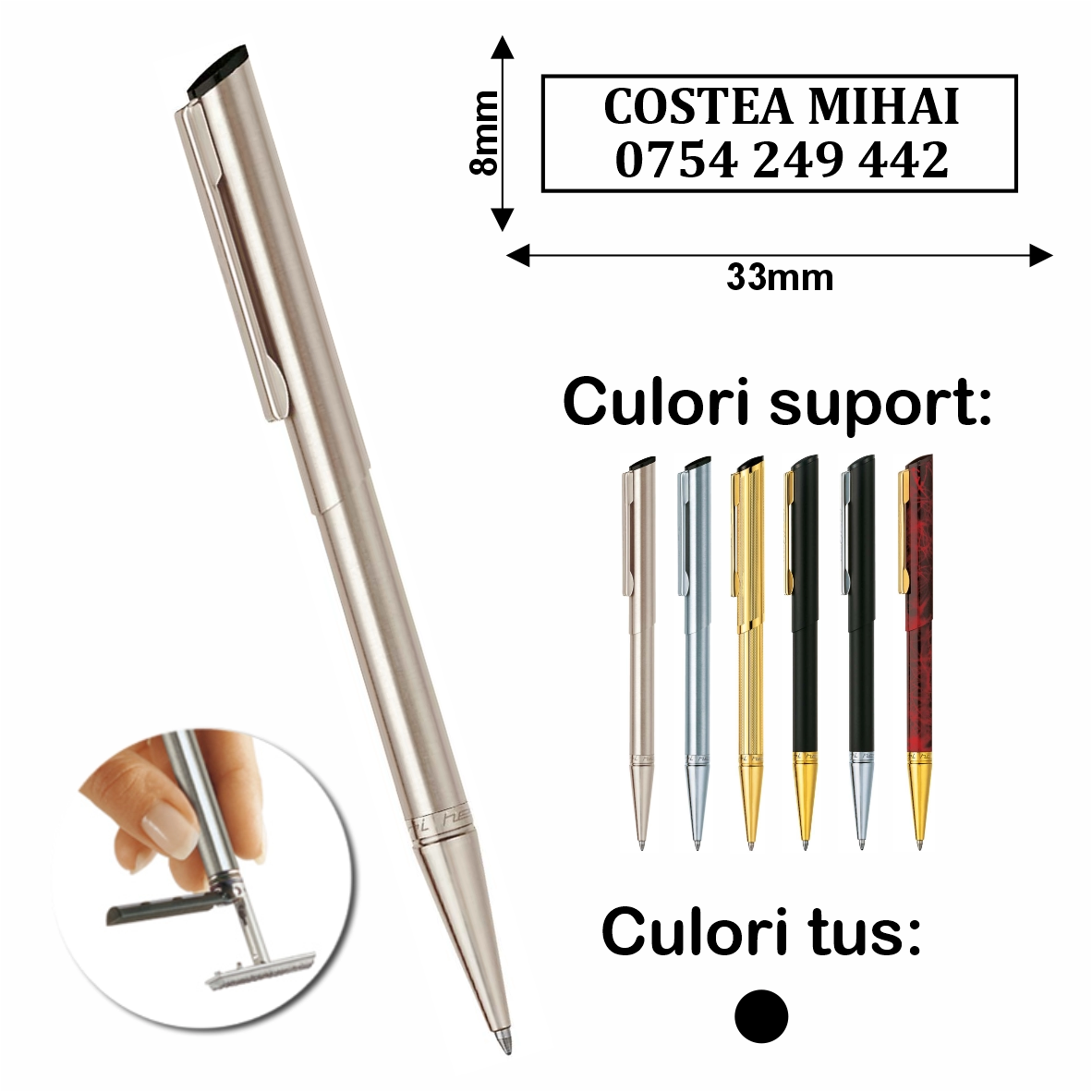 Parafa realizată pentru acest pix poate conține până la 3 rânduri de text.