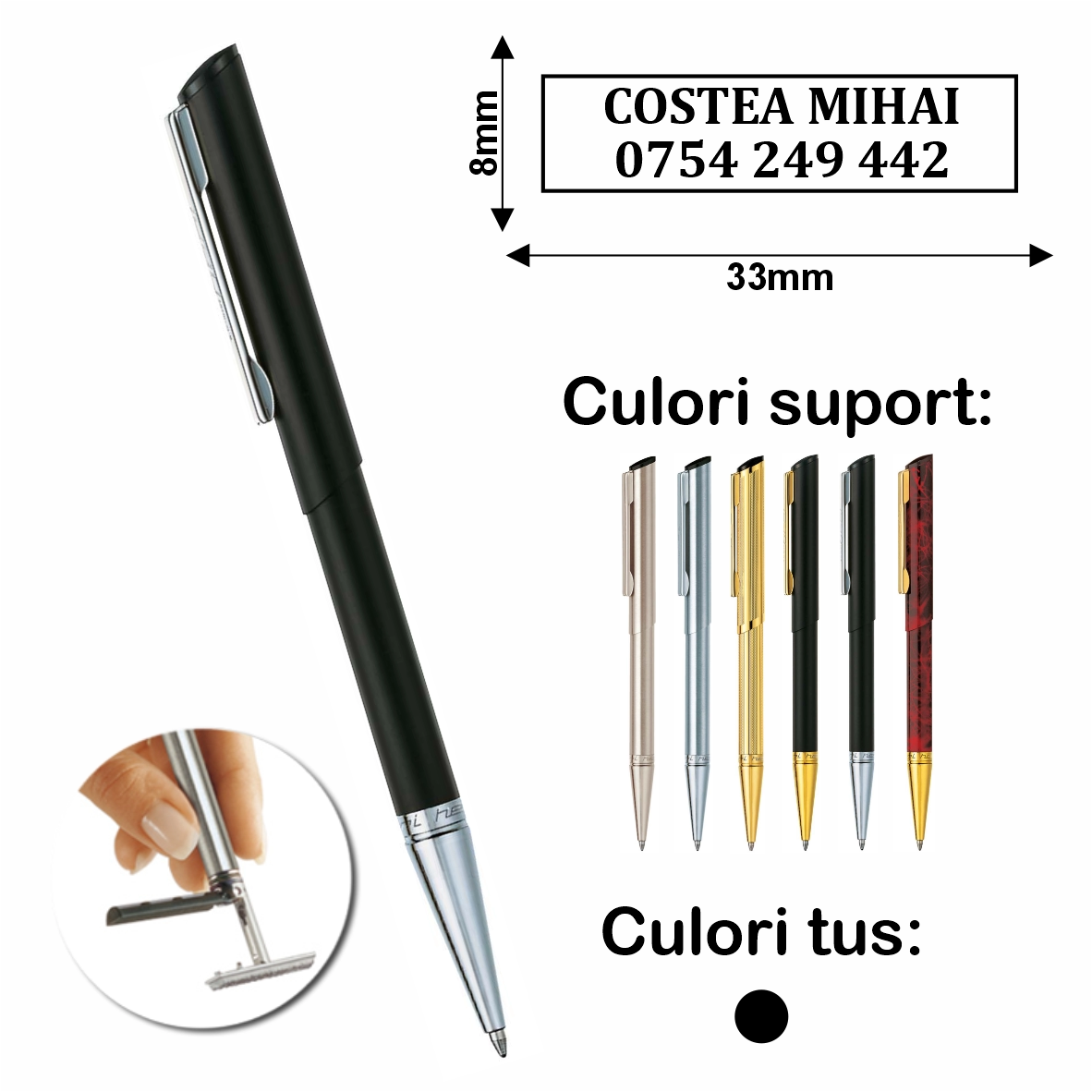 Parafa realizată pentru acest pix poate conține până la 3 rânduri de text.